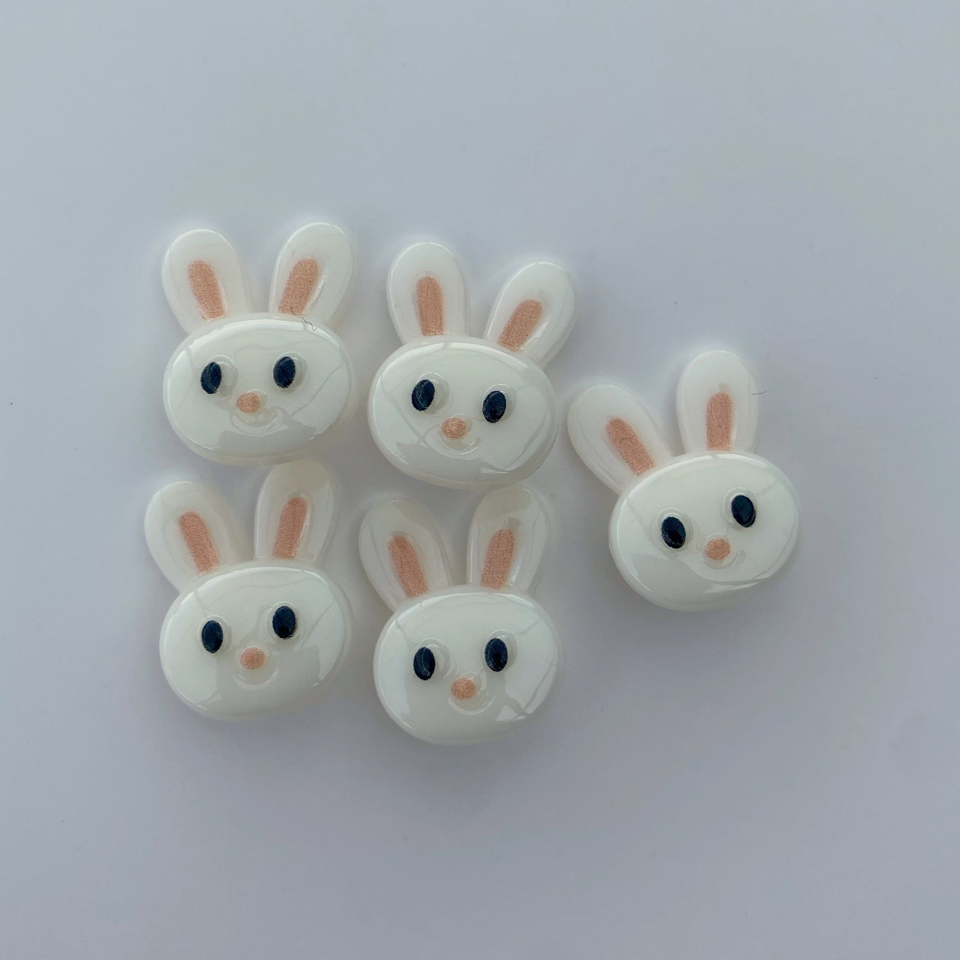A pack of 5 resin bunny buttons. Each button has a resin shank at the back for easy sewing onto garments and measures approximately 20mm x 15mm