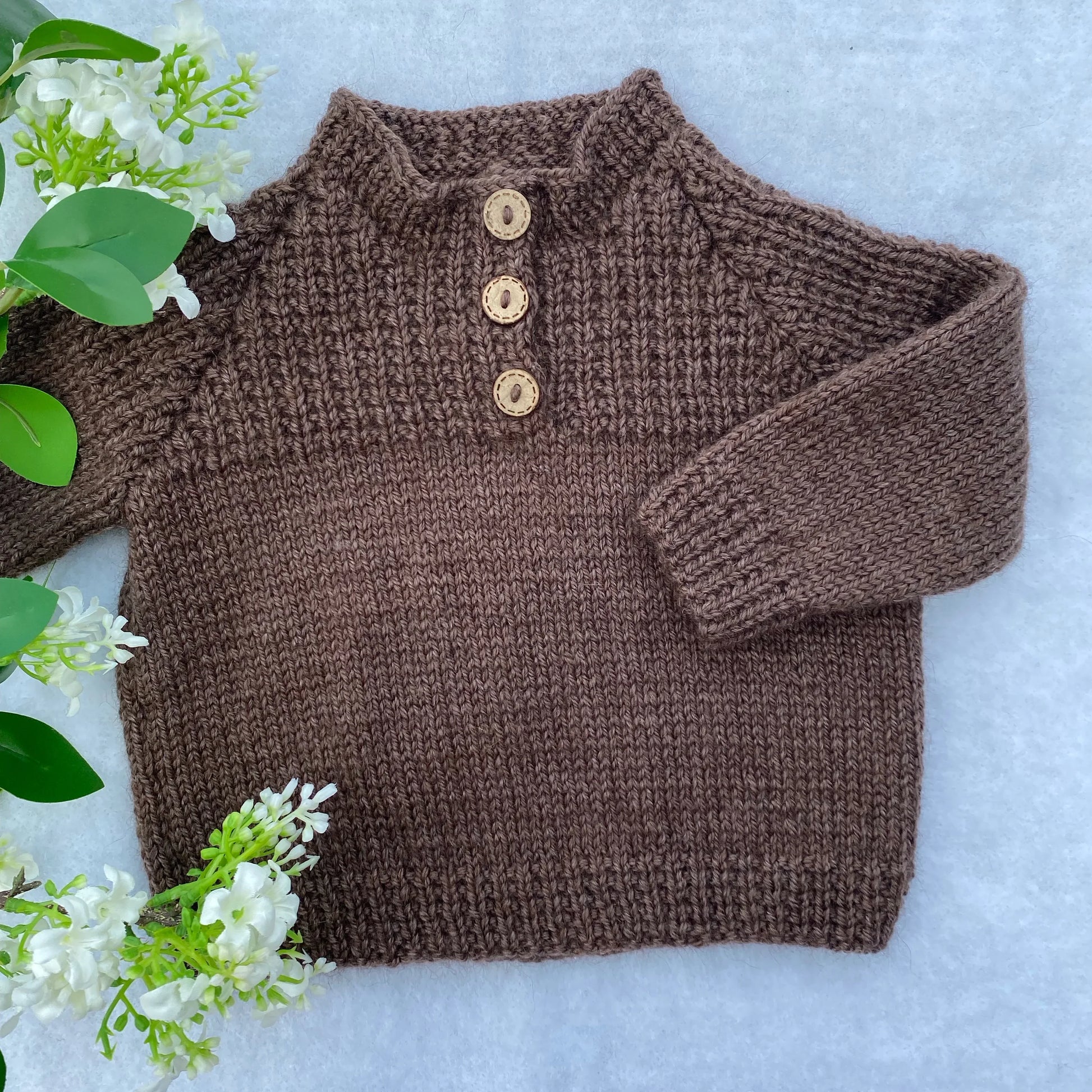 Handknit in soft merino, Humboldt is a patterned sweater with a slightly "rugged" feel to it. Available in a range of natural colours, it perfect for running around on chilly mornings.