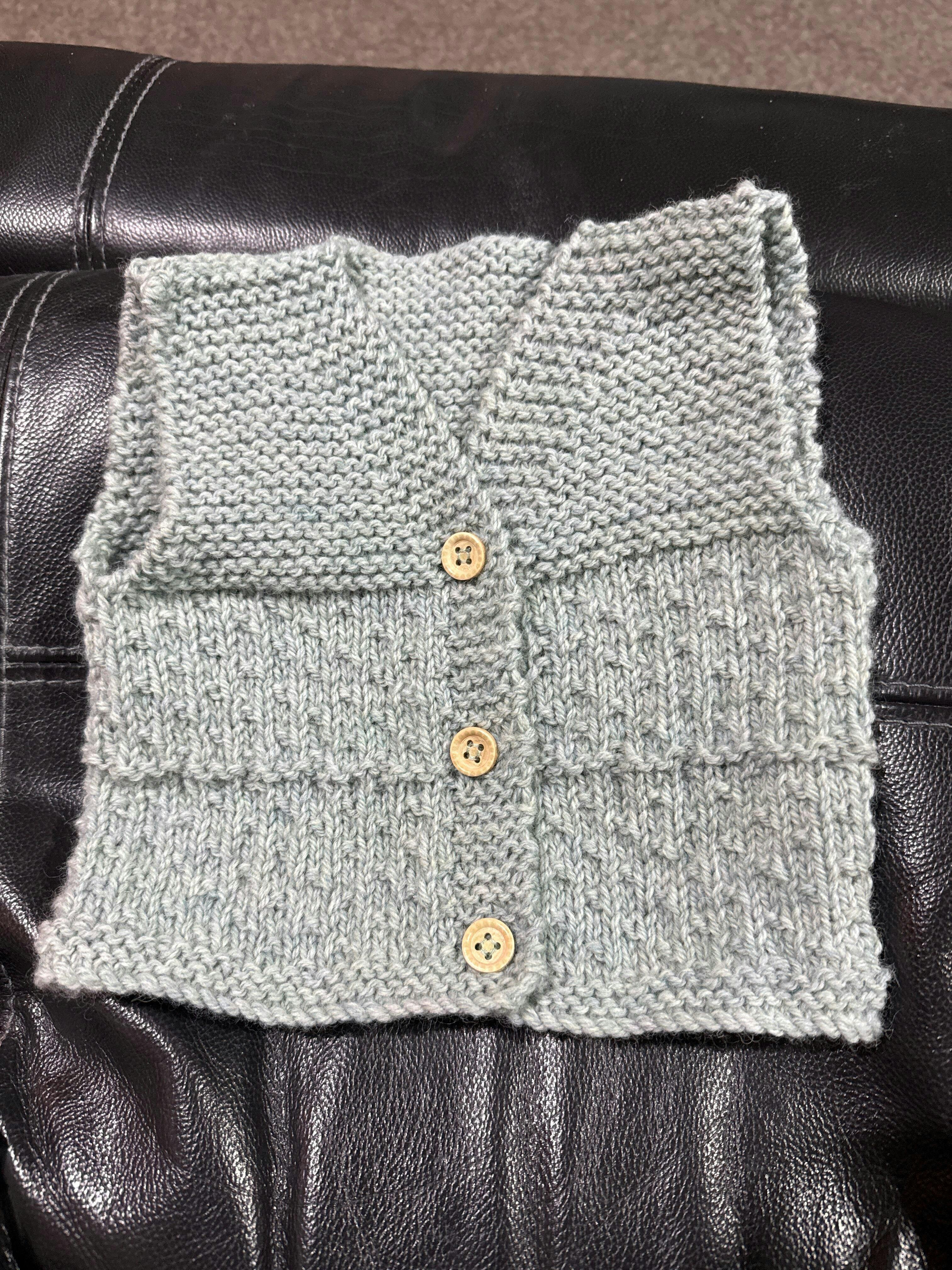 This is a very easy pattern to follow and would good in any colour. I like how it's knitted in one piece to the armholes and there's no sewing up if you can manage the method recommended for putting the fronts and back together.